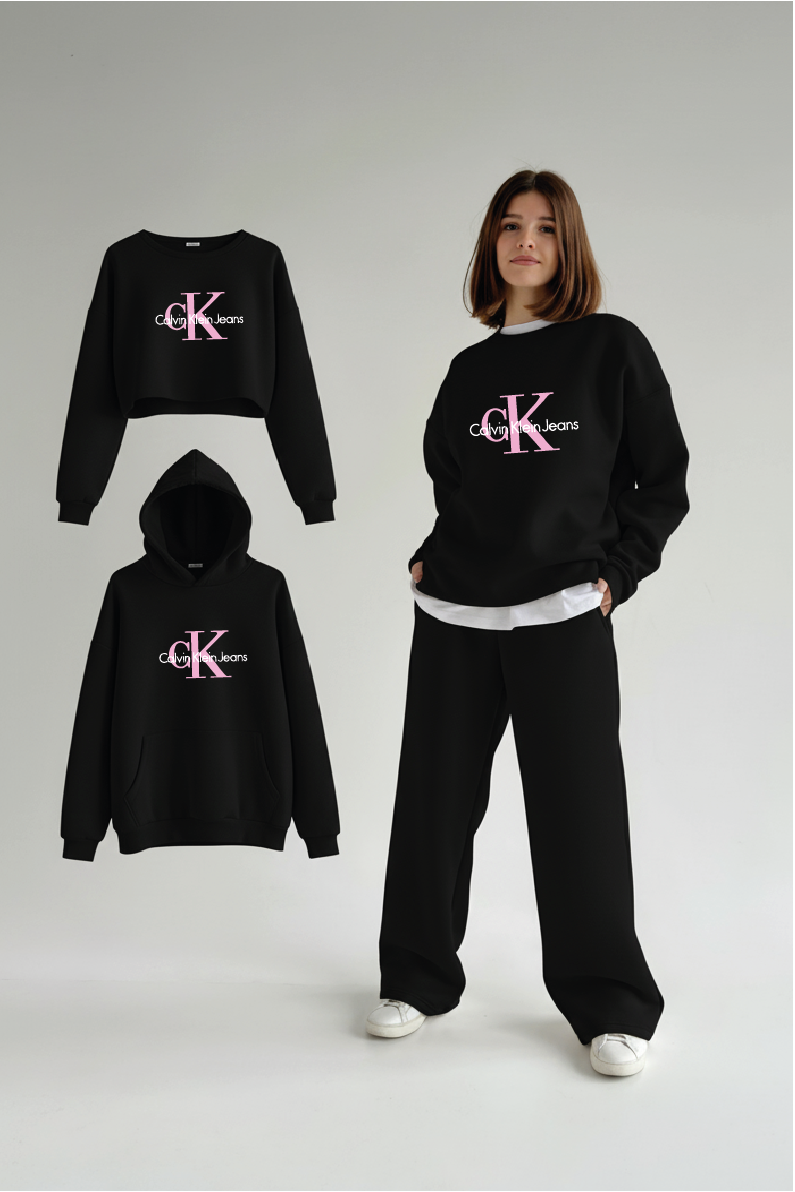 Découvrez notre ensemble confortable et tendance disponible en trois versions : pull classique, crop top ou sweat à capuche.